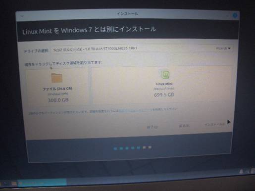 これはわかりやすい! Winを300GB Linuxを699GBにしておこう |